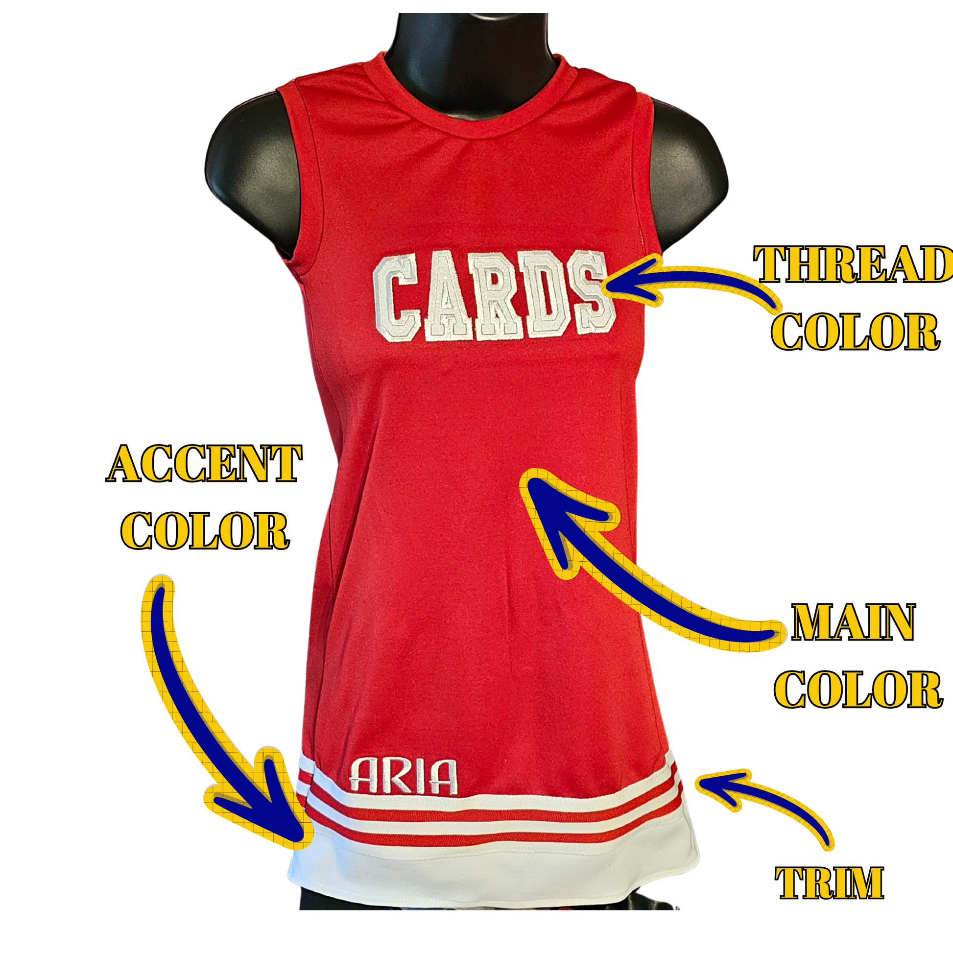 The cheer dress is sleeveless; however, sleeves can be added upon request.